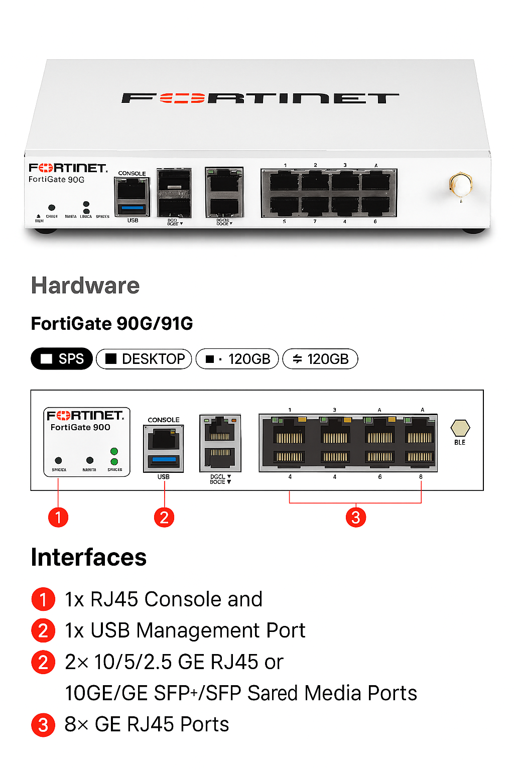 La serie FortiGate y FortiWiFi 90G integra funciones de firewall, SD-WAN y seguridad en un solo dispositivo, lo que las convierte en la solución perfecta para construir redes seguras en sedes empresariales distribuidas y transformar la arquitectura WAN a cualquier escala.